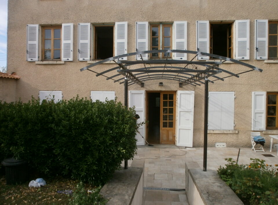 Nous avons conçu et fabriqué une pergola métallique sur mesure pour agrémenter la façade d’une maison individuelle dans le Lyonnais.